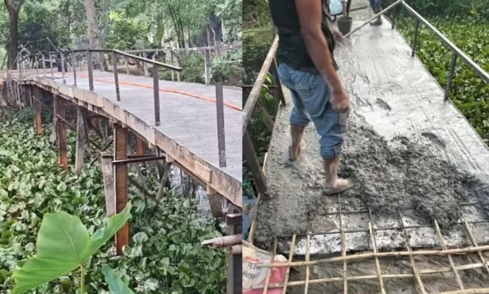 বরিশালে ব্রিজ নির্মাণে রডের পরিবর্তে বাঁশের কঞ্চি দিয়ে ঢালাই